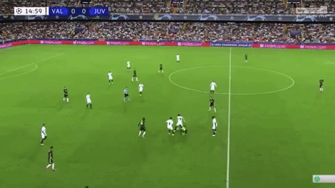 È dalla sinistra che son nate le quattro occasioni clamorose create dai bianconeri nel primo tempo. La difesa del Valencia, stringendo sempre fortemente sul lato del pallone, ha dimostrato le consuete criticità: difficoltà a riempire e difendere l’aria piccola; problematicità eccessive sulla zona debole; imbarazzo nell’ assorbire gli inserimenti senza palla dei centrocampisti. La pigrizia di alcuni valenciani, uno su tutti Guedes, hanno amplificato la capacità davvero brillante da parte della Juventus di eseguire il proprio piano partita.