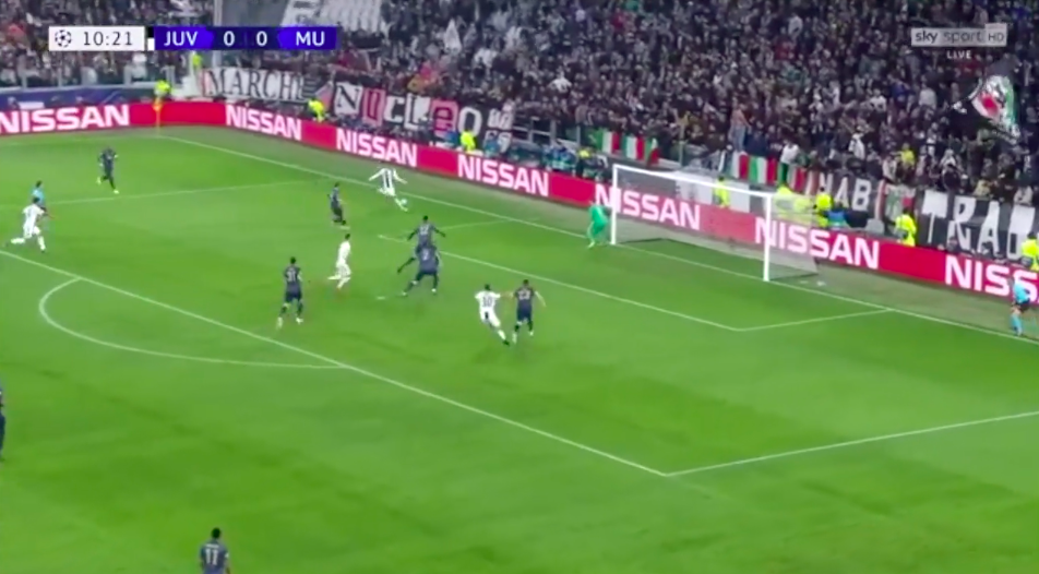 La gara col Manchester United è quella maggiormente ricca di errori collettivi e individuali. È una partita in cui il piano studiato a tavolino sembra prevedere la ricerca costante dell’ampiezza per poi andare al cross cercando di giocare il pallone sul compagno a rimorchio: il risultato è stato quello di una Juventus che è riuscita a sfondare puntualmente sulle fasce non riuscendo però a concretizzare i vantaggi creati.